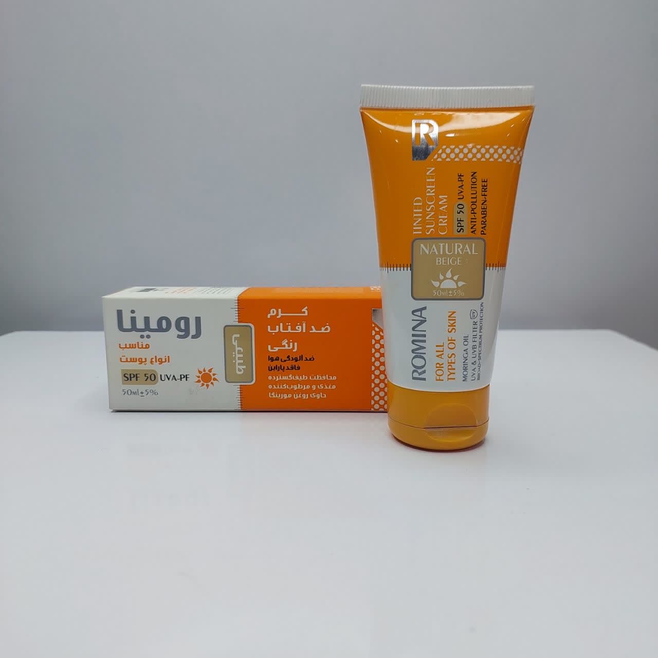 ناموجودضد آفتاب رنگی رومینا مناسب انواع پوست با spf50 رنگ طبیعی